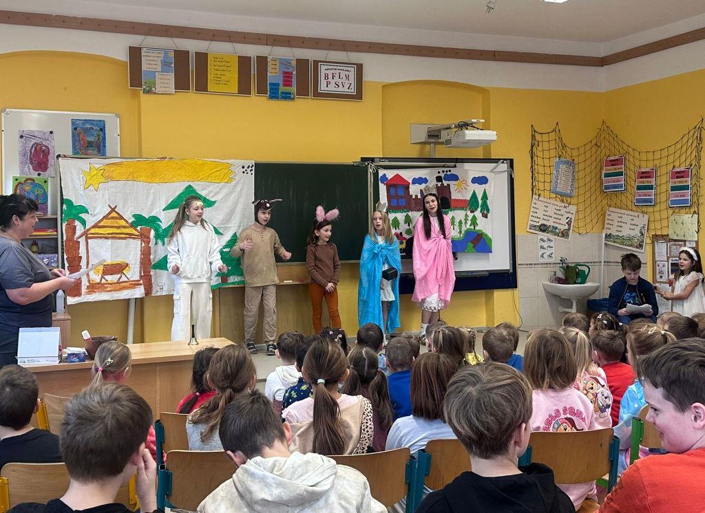 Ve středu 7. 1. 2026 přišly za námi děti z Mateřské školy v Litultovicích, aby se i se všemi dětmi naší školy podívaly na pohádku Jak šli zajíci do Betléma, kterou si pro ně připravili žáci dramatického kroužku. Pohádka se všem líbila, menší děti se do ní i aktivně zapojily, když odpovídaly pohádkovým postavám na otázky. Na závěr si všechny děti zazpívaly koledy a zimní písničky.