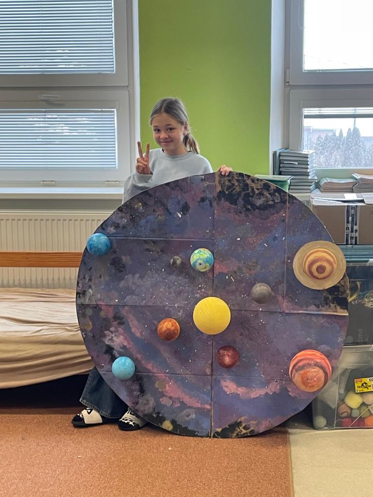 Žáci z přírodovědného kroužku se rozloučili s panem učitelem Martinem Pajorem a na závěr vytvořili maketu vesmíru.