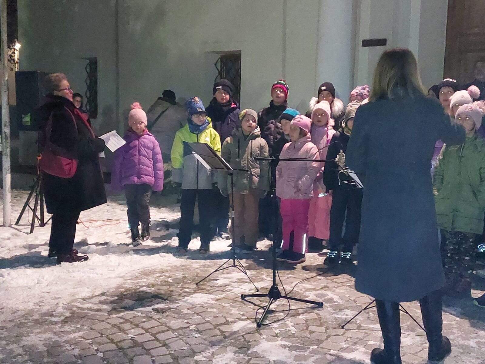 První adventní neděli večer 30. listopadu jsme se sešli u zámku, abychom zahájili čas adventu, zazpívali koledy a pomohli při zapalování 1. adventní svíce a rozsvěcování nazdobeného stromu. I přes mrazivé počasí přišlo hodně lidí, kteří si koledy zazpívali s námi.