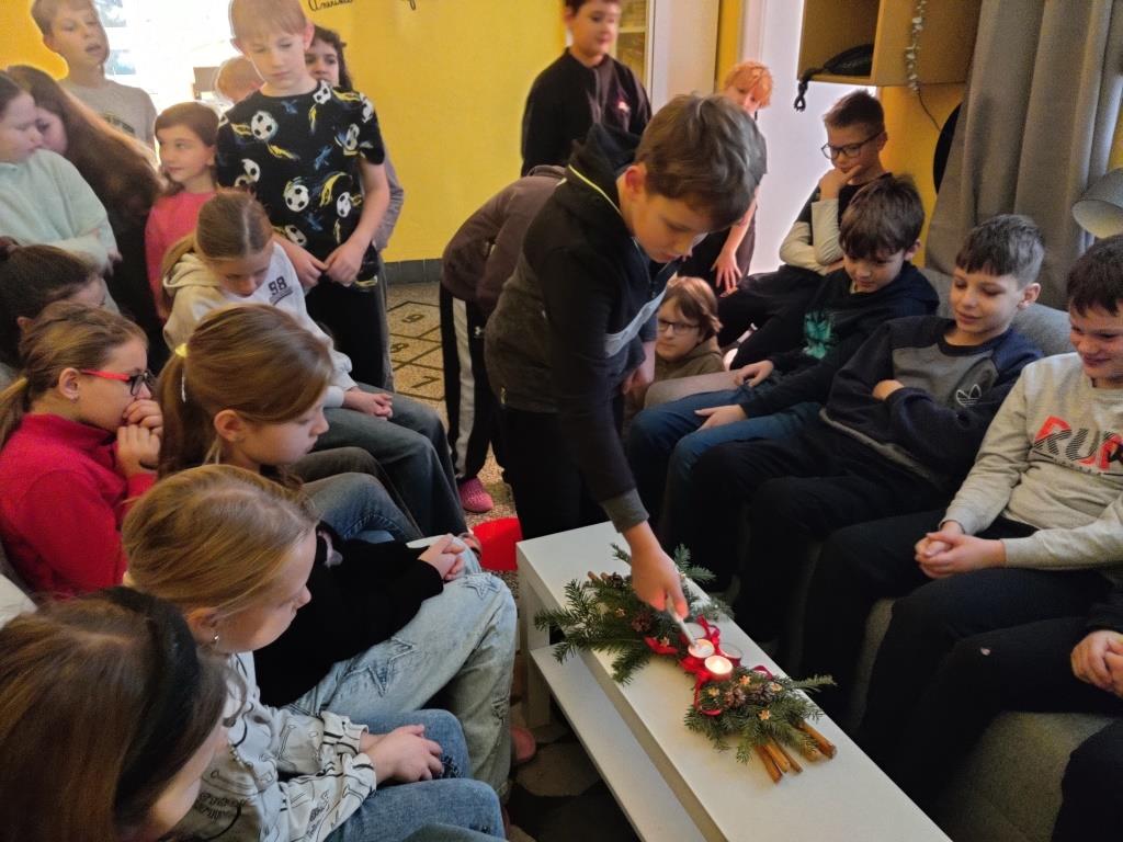 V pondělí 8.12.2025 nás čekalo druhé setkání u adventního věnce a zapálení druhé adventní svíce. Povyprávěli jsme si o setkání s Mikulášem, andělem a čertem a podělili jsme se o nové zážitky z vánočních trhů. Po zapálení svící jsme se vydali do tříd zjistit, jaké nové stopy ve vyšetřování nám přinesl další Vánoční zpravodaj.