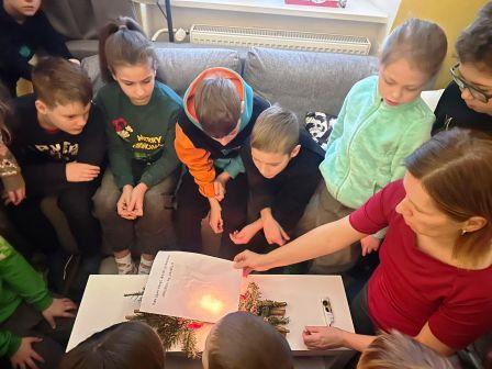 Ve středu 3. 12. 2025 se naši druháčci vydali do Opavy, kde si v Knihovně Petra Bezruče poslechli zajímavou besedu, čtení a vyprávění o Václavu Čtvrtkovi, autorovi pohádek, např. Rákosníček, Rumcajs, Víla Amálka, Pohádky z mechu a kapradí, kterou teď všichni čtou a nakreslené obrázky dali na výzdobu do knihovny. Po ukončení besedy navštívili vánoční trhy na Horním náměstí, kde napsali dopis Ježíškovi, zazvonili si pro štěstí a prohlédli si betlém.