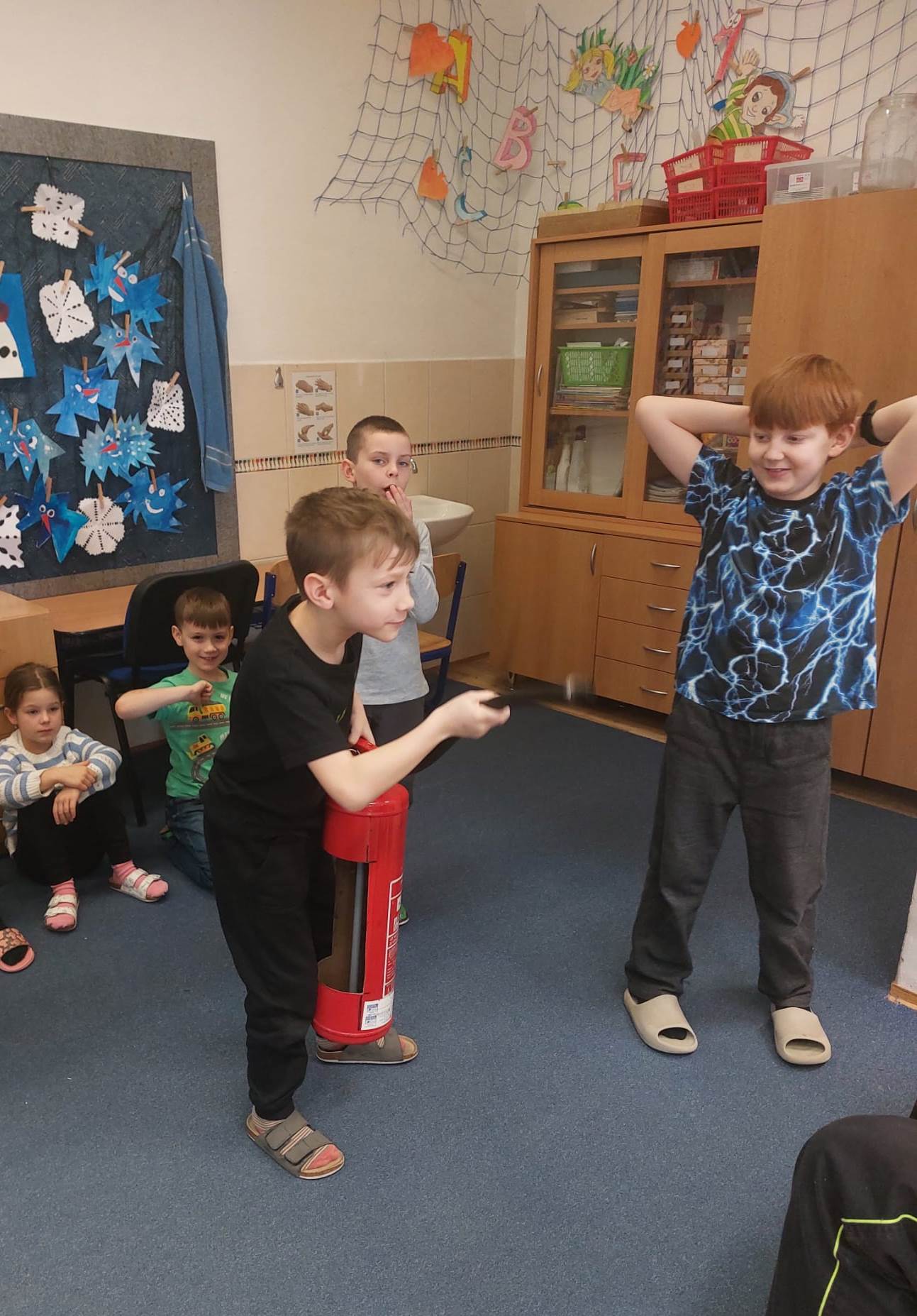 Ve středu 18. 2. 2026 proběhla 2. část besedy s hasiči, nejprve si žáci zopakovali, co všechno se minule naučili, nahlášení požáru, jak uhasit sebe i další osobu, důležitá telefonní čísla. Vyzkoušeli si, jak se zachovat, když v místnosti začne hořet, co je zlý a dobrý oheň, seznámili se s druhy hasících přístrojů, od čeho může doma začít hořet a jak se zachovat. Nakonec všichni dostali krásné odměny v podobě omalovánek, přívěšků s důležitými telefonními čísly.